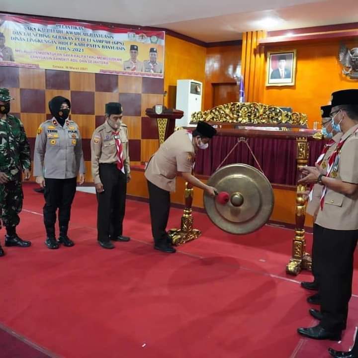 Kliksumatera.com, BANYUASIN– Bupati Banyuasin H Askolani SH MH melaunching Gerakan Peduli Sampah (GPS) Kabupaten Banyuasin di Auditoriun Pemkab Banyuasin, Selasa.16 / 03/2021. Sekaligus diperkuat dengan Pelantikan Kepengurusan Satuan Karya Pramuka Kalpataru Dinas Lingkungan Hidup Kabupaten Banyuasin Masa Bhakti Tahun 2021-2026 oleh Ketua Pramuka Kabupaten Banyuasin DR HM Senen Har MSi yang dihadiri juga Wakil Bupati H Slamet, Wakapolres, Kejaksaan, Kodim 0430 dan anggota Pramuka.