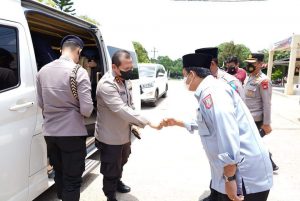 Kliksumatera.com, BANYUASIN– Bupati Banyuasin H. Askolani SH MH didampingi Kapolres Banyuasin AKBP Imam Tarmudi, SIK MH menyambut kedatangan Kapolda Sumatera Selatan Irjen Pol. Drs. Toni Harmanto di Mapolres Banyuasin, Selasa (21/09/2021).
