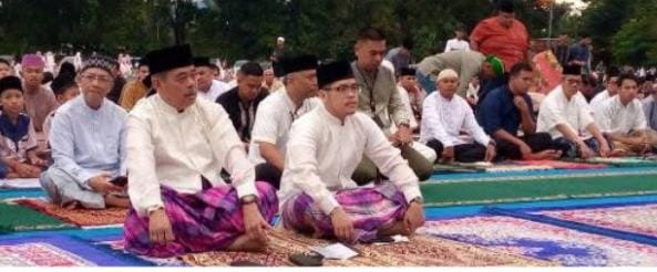 Kliksumatera, Lahat – Gema takbir membahana mengiringi langkah umat muslim di seluruh penjuru merayakan kemenangannya1 Syawal 1446 H, setelah sebulan penuh melawan perang hawa nafsu. di hari nan Fitri ini Bupati Lahat H. Bursah Zarnubi. SE, Wakil Bupati Widia Ningsih. SH.,MH, Forkopimda, Ketua TP-PKK Lahat Ir. Sri Meliana. Asisten, Staf Ahli, Kepala OPD mengadakan shalat Id.