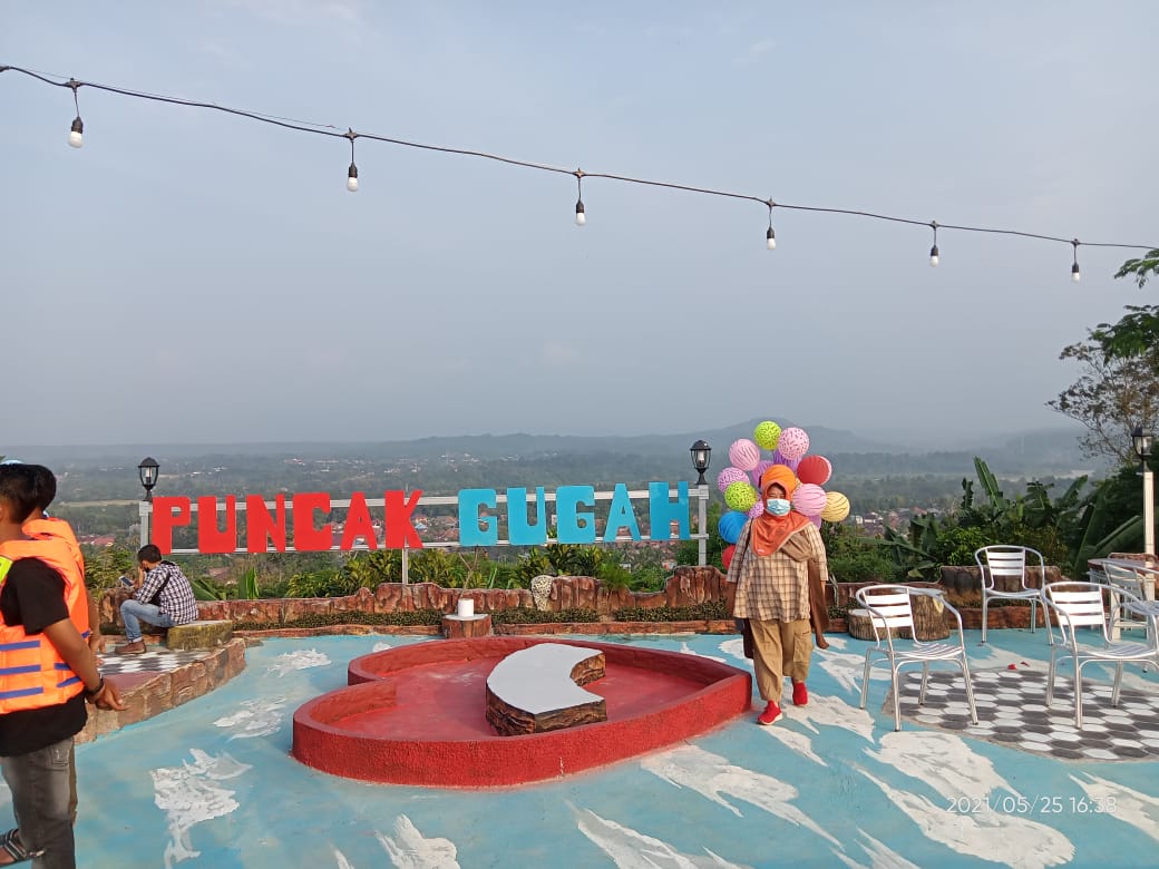 Di tempat Wisata Puncak Gugah Nan Eksotic ini, menawarkan pemandangan Kota Lahat dilihat dari sebelah barat. Terlihat hamparan hijau pepohonan, tampak Kota Lahat seperti Taman pohon yang indah, ada sensasi tersendiri menuju Taman Wisata ini. Cukup merogoh kocek Rp 30.000 tiket masuk perorang dan mendapatkan satu buah Pop Mie serta Anda bebas berselfie ria.
