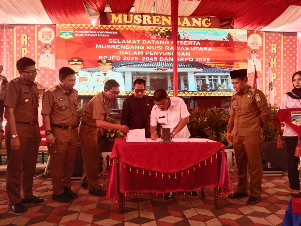 Kliksumatera.com, MURATARA- Pemerintah Kabupaten Musi Rawas Utara (Muratara) menggelar Musyawarah Pembangunan Daerah (Musrenbang) Rencana Pembangunan Jangka Panjang Daerah (RPJPD) 2025-2045 dan Rencana Kerja Pembangunan Daerah (RKPD) tahun 2025 dengan tema “RKPD 2025 Bumi Berselang serundingan Maju Sejahtera dan Berkelanjutan”.