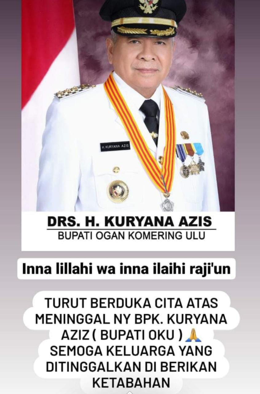 Kliksumatera.com, BATURAJA- Innalilahi wainnailahi rojiun, telah meninggal dunia Bupati Ogan Komering ulu (OKU) H Kuryana Azis.