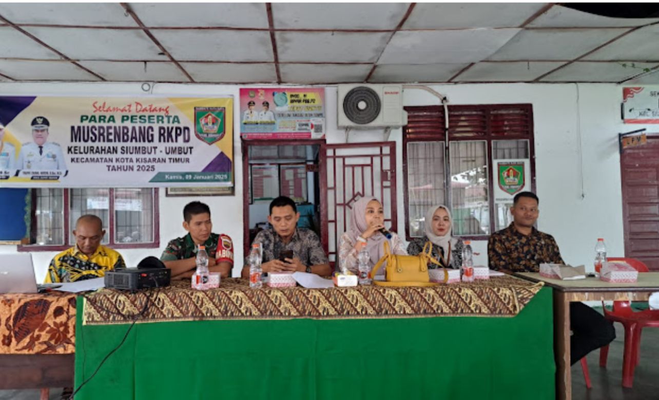 Kliksumatera.com, ASAHAN- Camat Kota Kisaran Timur A. Syaiful P. Pasaribu. S.AP., M.M diwakili Kasi PMK Kecamatan Kota Kisaran Timur Muhammad Masyuri, SP hadiri sekaligus membuka secara resmi Musyawarah Rencana Pembangunan (MUSRENBANG) Tingkat Kelurahan Siumbut-Umbut Tahun 2025 di Aula Kantor Lurah Siumbut-Umbut. Kamis (09/01/2025).