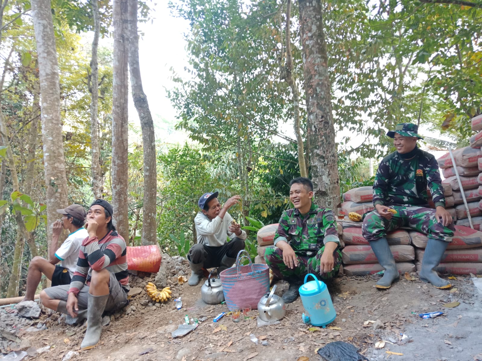 “Di waktu istirahat walaupun duduk di tempat seadanya bahkan kotor seperti ditumpukan material dan ditemani hidangan seadanya sangat terasa nikmat, apalagi kami bersama warga saling bersenda gurau sehingga rasa capek akan berkurang”, ujar Koptu Edo anggota satgas TMMD dari Koramil 13/Bener.