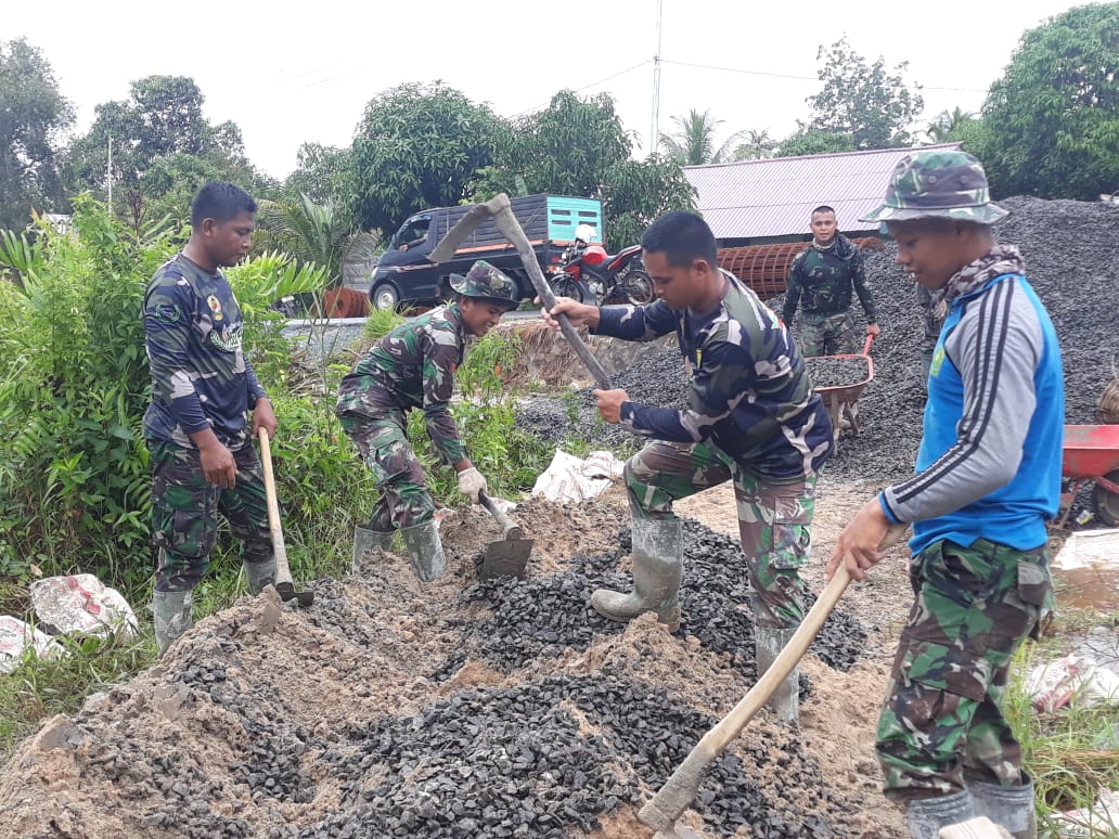 Kapuas,- Tak bisa dibayangkan jika puluhan TNI anggota Satgas TMMD Reguler ke -110 Kodim 1011/KLK, Desa Saka Lagun, Kecamatan Pulau Petak, Kabupaten Kapuas, bekerja di satu lokasi pada Sabtu (13/3/2021).