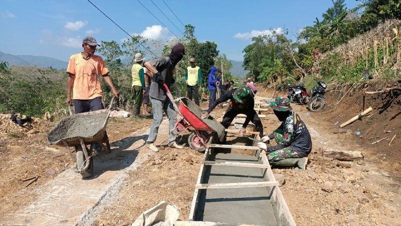 ”Tidak ada kata kendorkan semangat, terus kerja dan bekerja. Terus kebut pengerjaan sasaran pengecoran jalan ini, mengingat sebentar lagi program TMMD akan ditutup,” kata Pasi Ter.
