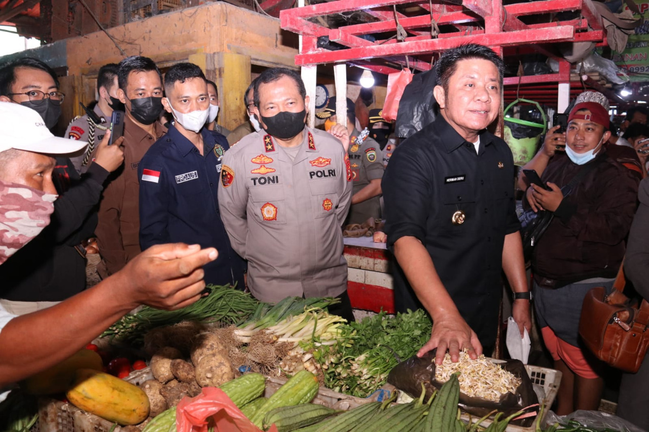 Kliksumatera.com, PALEMBANG- Untuk memastikan ketersediaan dan mengecek harga bahan pokok (Bapok) menjelang bulan suci Ramadhan 1443 H. Gubernur Sumatra Selatan (Sumsel), H Herman Deru didampingi Kapolda Sumsel Toni Hermanto dan Sejumlah Forkopimda Sumsel melakukan peninjauan di sejumlah pasar di Palembang yakni Pasar Sekip dan Pasar Kuto.
