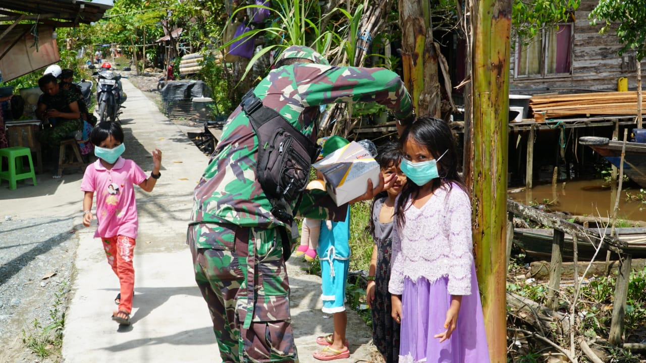 Seperti yang dilakukan oleh Serda Taufik, saking cintanya kepada anak-anak desa, dirinya selalu memberikan yang terbaik dengan memberikan masker kepada mereka dengan tujuan agar mereka memakai masker sebagai upaya untuk mencegah penularan Covid-19.