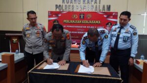 Kliksumatera.com, PAGARALAM- Mengingat sangat pentingnya kerja sama kolaborasi dalam menciptakan situasi aman dan kondusif di tengah-tengah masyarakat, maka Kapolres Pagaralam AKBP Arif Harsono SIK MH melaksanakan penandatanganan kerja sama dengan Kepala Balai Pemasyarakatan (Bapas) Klas II Lahat, Perimansyah SSos, di ruang Aula Polres Pagaralam, Rabu (30/11).