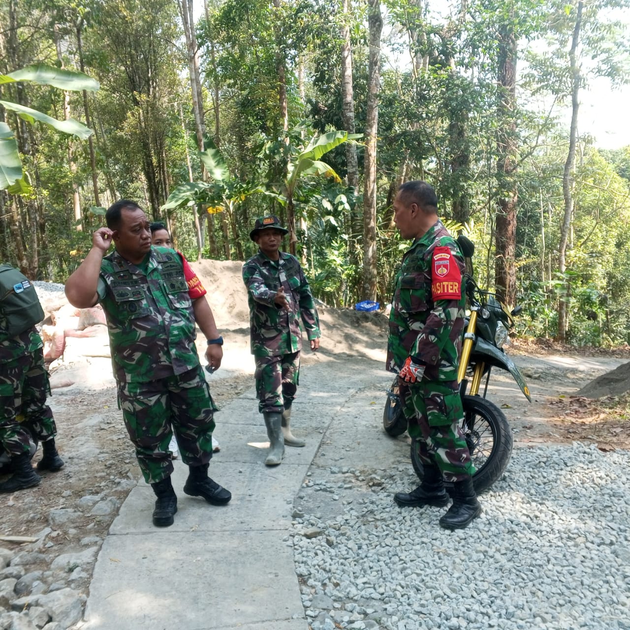 Saat tiba di lokasi pelaksanaan TMMD, Dandim langsung mengecek perkembangan pembangunan sasaran fisik disana berupa pengecoran jalan sepanjang 2 Km.Selain itu, Letkol Inf Yohanes Heru Wibowo pun menyempatkan diri untuk berbincang-bincang dengan masyarakat.
