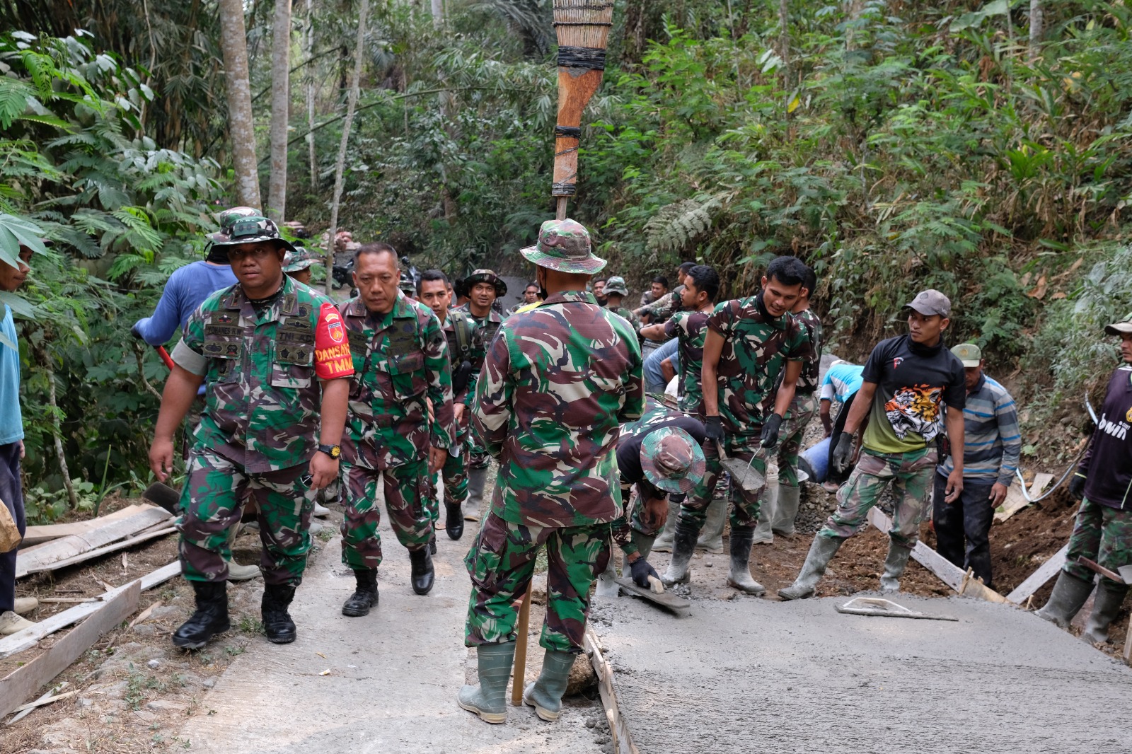 ” Bahwa antusiasme para prajurit dalam pembangun fisik di lokasi berjalan baik dan optimis selesai tepat waktu. Dengan semangat dan antusiasme para personil saya yakin pembangunan baik saran fisik maupun non fisik yang sementara terus di gasak oleh para personil akan sesuai dengan tepat waktunya,” ungkapnya.
