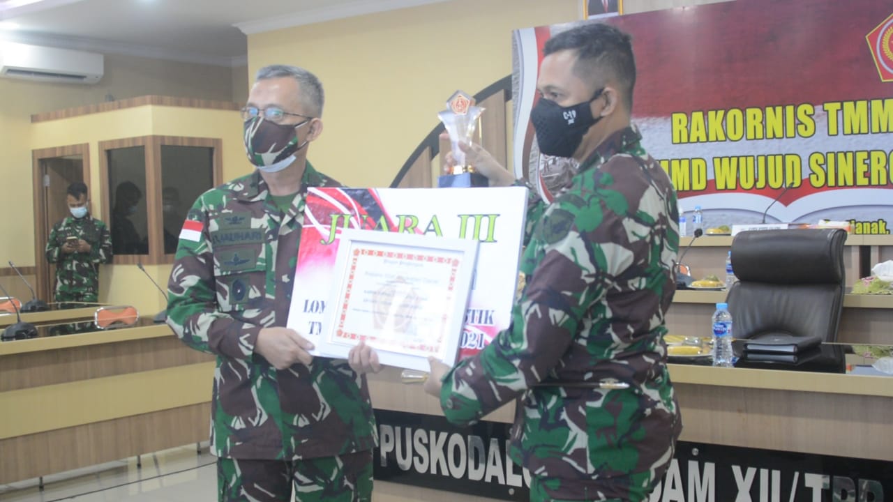 Singkawang, Kamis (26/8/21) Kodim 1202/Singkawang mendapatkan juara III tingkat nasional dalam lomba karya jurnalistik TNI Manunggal Membangun Desa (TMMD) Regtas Ke-111 Tahun 2021 kategori Dansatgas/Dandim. Lomba ini diadakan Dinas Penerangan Angkatan Darat (Dispenad) bekerja sama dengan Staf Teritorial TNI-AD.