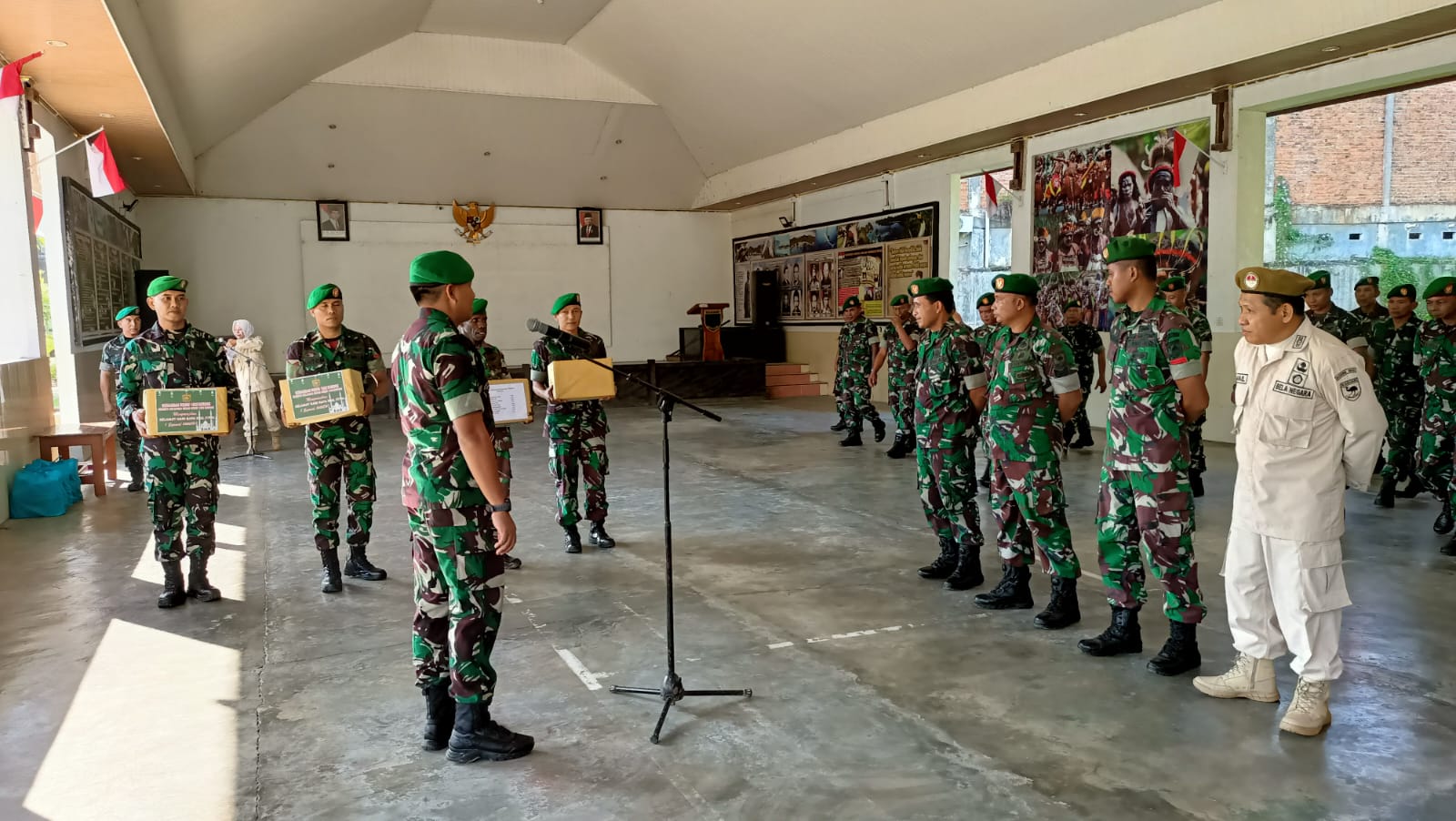 Sorong – Dalam menyambut Hari Raya Idul Fitri 1444 H/ 2023, anggota TNI dan PNS di jajaran Kodim 1802/Sorong mendapat bingkisan lebaran. Penyerahan bingkisan secara simbolis melalui apel yang dipimpin langsung oleh Dandim 1802/Sorong Letkol Cpn Andi Sigit Pamungkas, S,E., M.IP bertempat di aula pandu sakti Makodim 1802/Sorong jalan ahmad yani kota sorong. Selasa (11/04/2023)
