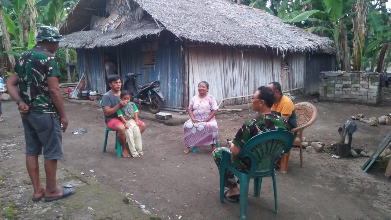Danramril 1501-02/Ternate Kapten Inf Muji Utama meninjau langsung ke rumah warga yang akan dilakukan perencanaan pembongkaran. Danramil melaksanakan koordinasi dan memberikan sedikit arahan kepada warga yang mempunyai rumah tersebut untuk perencanaan pembongkaran.