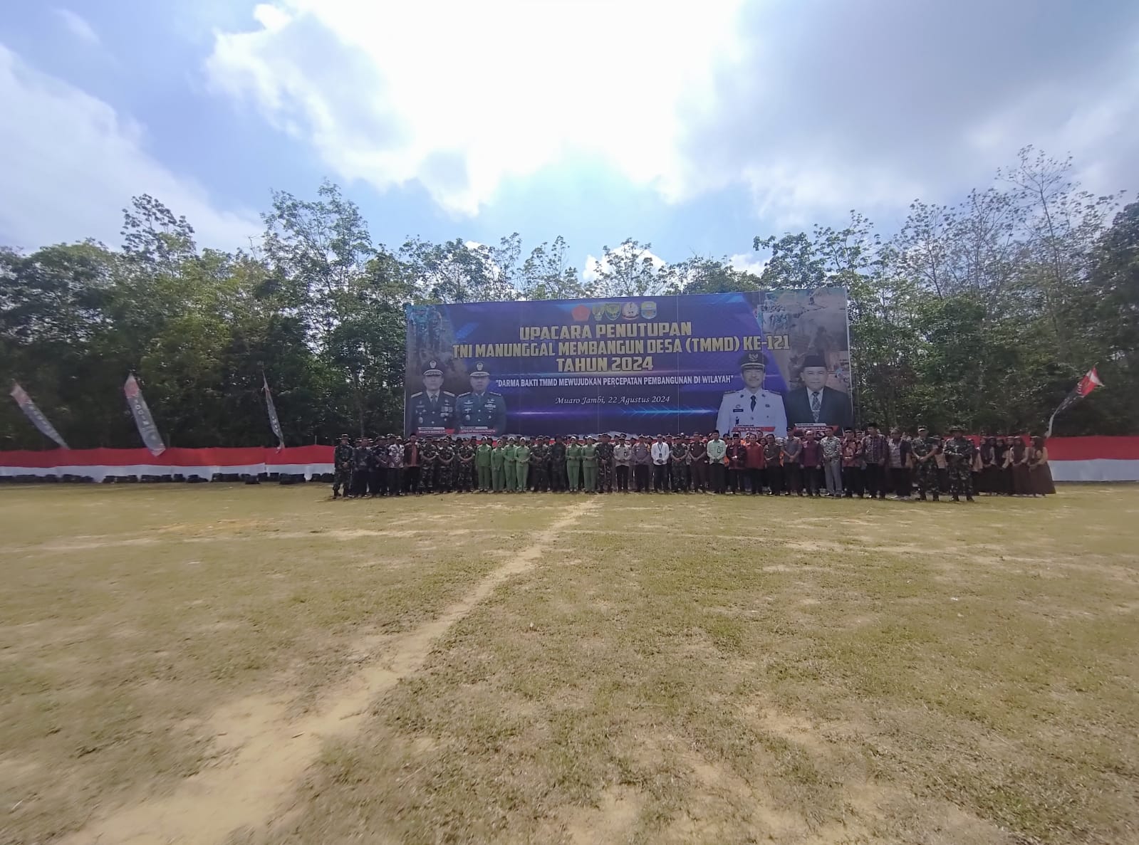 Penutupan program tersebut dilakukan melalui kegiatan apel bersama dan penandatangan naskah penyerahan hasil TMMD oleh Dan Satgas TMMD ke 121 Kodim 0415/Jambi, bertempat di Lapangan Sepak Bola Bajaw, Kamis (10/8/2023).