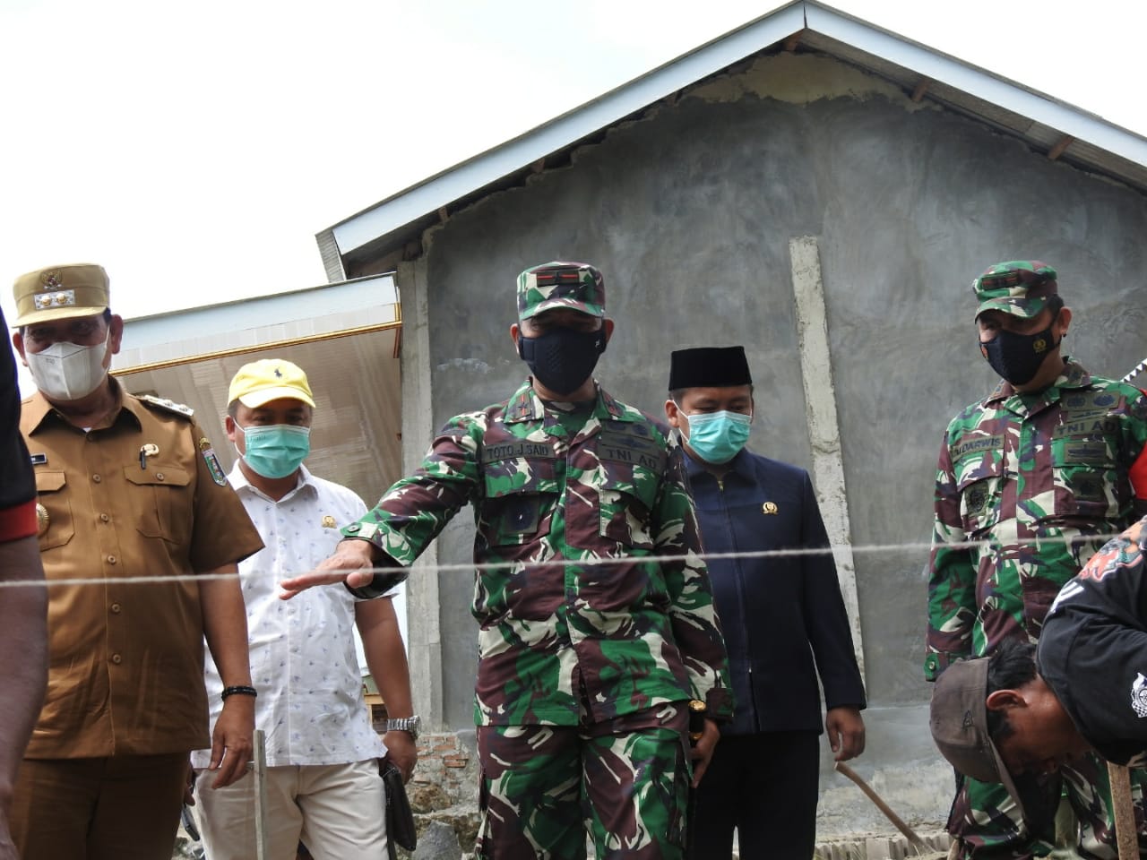 Lampung Timur, Komamdan Korem (Danrem) 043/Gatam Brigjen TNI Toto Jumariono S.S M.Ikom melaksanakan kunjungan kerja sekaligus peninjauan fisik pekerjaan TMMD Ke -110 TA. 2021 Kodim 0429/Lamtim, di Desa Sukorahayu dan Karang Anyar Kecamatan Labuhan Maringgai, Kabupaten Lampung Timur, Selasa (9/3/2021).