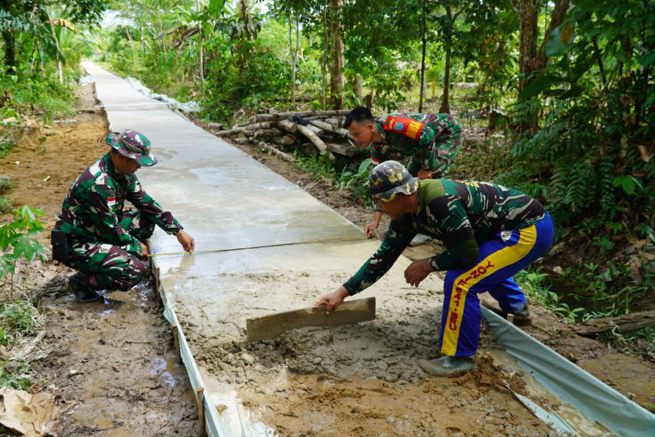 Sambas – Dansatgas TNI Manunggal Membangun Desa (TMMD) ke-126 Kodim 1208/Sambas, Letkol Czi Priyo Hindrarto S. I. P, meninjau langsung progres pengerjaan rabat beton di lokasi kegiatan TMMD yang berada di Desa Ratu Sepudak, Kecamatan Galing, Rabu (22/10/2025).