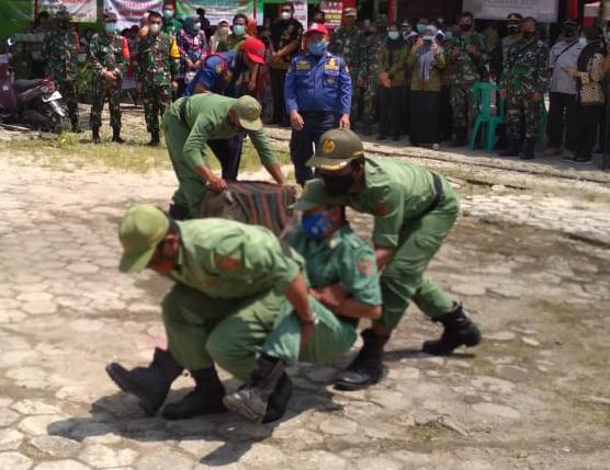 Bojonegoro, Komandan Satgas (Dansatgas) TNI Manunggal Membangun Desa (TMMD) ke-110 Kodim 0813/Bojonegoro meninjau gladi sosialisasi dari Damkar Bojonegoro.