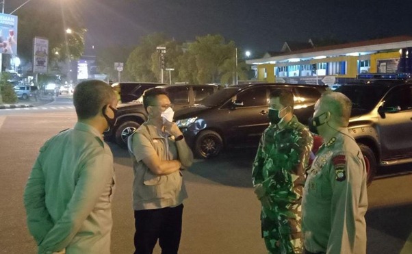 Pontianak – Guna melihat langsung baik mekanisme maupun teknis penerapan PPKM darurat di wilayah Kota Pontianak, Dansatgas TMMD ke-111 Kodim 1207/Pontianak (Kolonel Inf Jajang Kurniawan, S.IP., MM.) turun langsung meninjau pemberlakuan penerapan PPKM darurat di Kota Pontianak bersama Walikota Pontianak dan Kapolresta Pontianak, Minggu (11/07/2021).