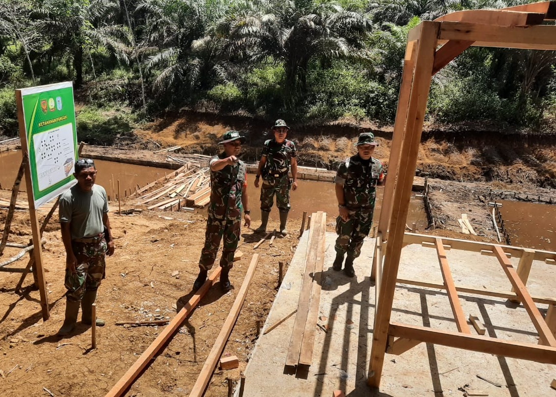 Merangin – Dansatgas TNI Manunggal Membangun Desa (TMMD) ke 122 Kodim 0420 Sarko Letkol Inf Suyono S.Sos mengecek proses pembuatan saung yang sedang berlangsung di Desa Bedeng Rejo. Kegiatan ini merupakan bagian dari program TMMD yang bertujuan untuk meningkatkan fasilitas dan infrastruktur di wilayah tersebut.