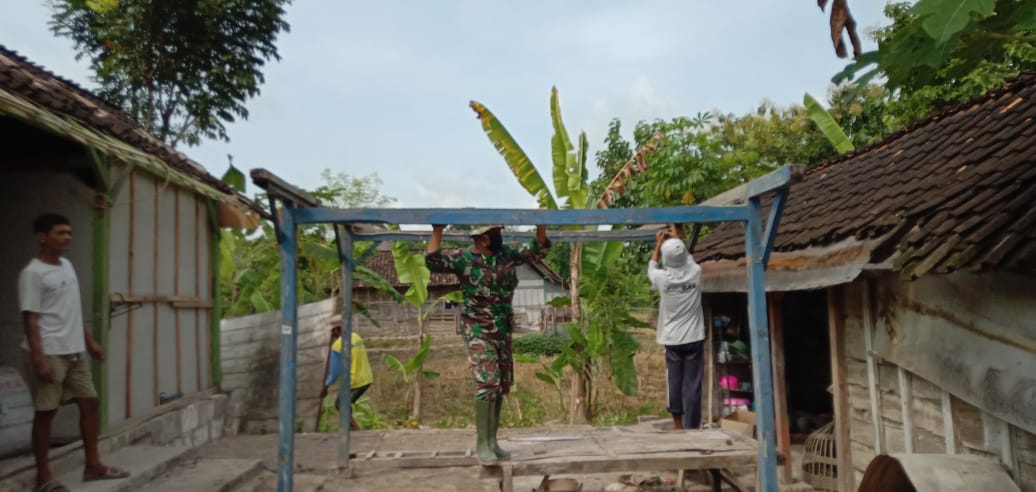 Sementara itu Pantauan media ini Kamis (11/3/2021), Tampak Personil Satgas TMMD 110 Bojonegoro sedang sibuk sekali melakukan Proses renovasi rumah tersebut gotong – royong bersama Masyarakat. (Pendim 0813)