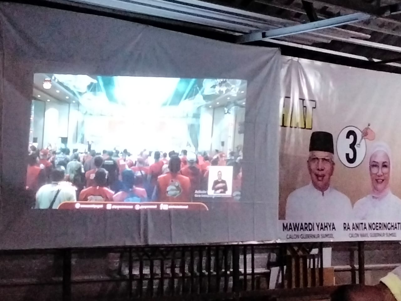 Ketika Debat Kandidat dimulai, Relawan Paslon nomor 3 Cagub – Cagub Sumsel Ir, H, Mawardi Yahya – Dr Hj Anta Noeringhati SH,MH menyimak Paslon ini, fokus pada layar infokus yang dipasang. Tepuk tangan riuh simpatisan yang hadir pada nobar ketika season pertama perkenalkan Visi dan Misi debat pertama di Hotel Novotel Palembang.