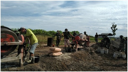 Dengan Cuaca yang terbilang cerah sangatlah membantu dalam pengerjaan pengecoran karena dengan begitu pekerja beserta kendaraan dan alat alat pendukug dalam melaksanakan tugasnya dapat melaksanakan dengan lancar proses pengerjaannya . didukung cuaca yang cerah Para Anggota Satgas dan Masyarakat melaksanakan pengerjaanya serta menunjukan ketrampilannya dalam megoperasikan mesin molen tersebut dalam pengerjaan membangun jalan penghubung antara Desa Sumberarum dan Desa Tamansari Kec. Jaken Kab.Pati. semangat mereka dalam melaksanakan kegiatan tersebut ini tergambar dalam keseriusan pelaksanaan kegiatan.