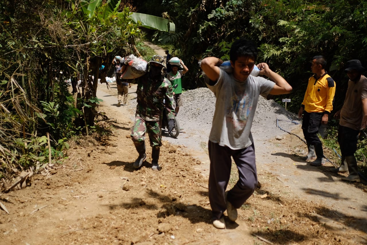 Warga sangat semangat dalam bekerja. Mereka melihat sedangkan Tentara saja bekerja dan bukan hanya bisa menyuruh apalagi mereka yang di bangunkan desanya.