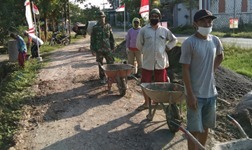 Para Anggota Satgas TMMD dan Masyarakat dengan semangat melaksanakan kegiatan pengantrian untuk mengisi angkong dengan bahan cor. Dalam kegiatan antrian Anggota Satgas TMMD berserta masyarakat tetap menjalankan Protokol kesehatan dan selalu jaga jarak antar orang .Jalan penghubung desa sepanjang 1.450 M dengan lebar 2,6 M dan ketebalan 17 cm mereka dengan ikhlas melaksanakan pengerjaan betonisasi jalan karena mereka sadar kalau dengan ikhlas kita membangun jalan Untuk Masyarakat berarti kita sudah membangun jalan menuju surga.
