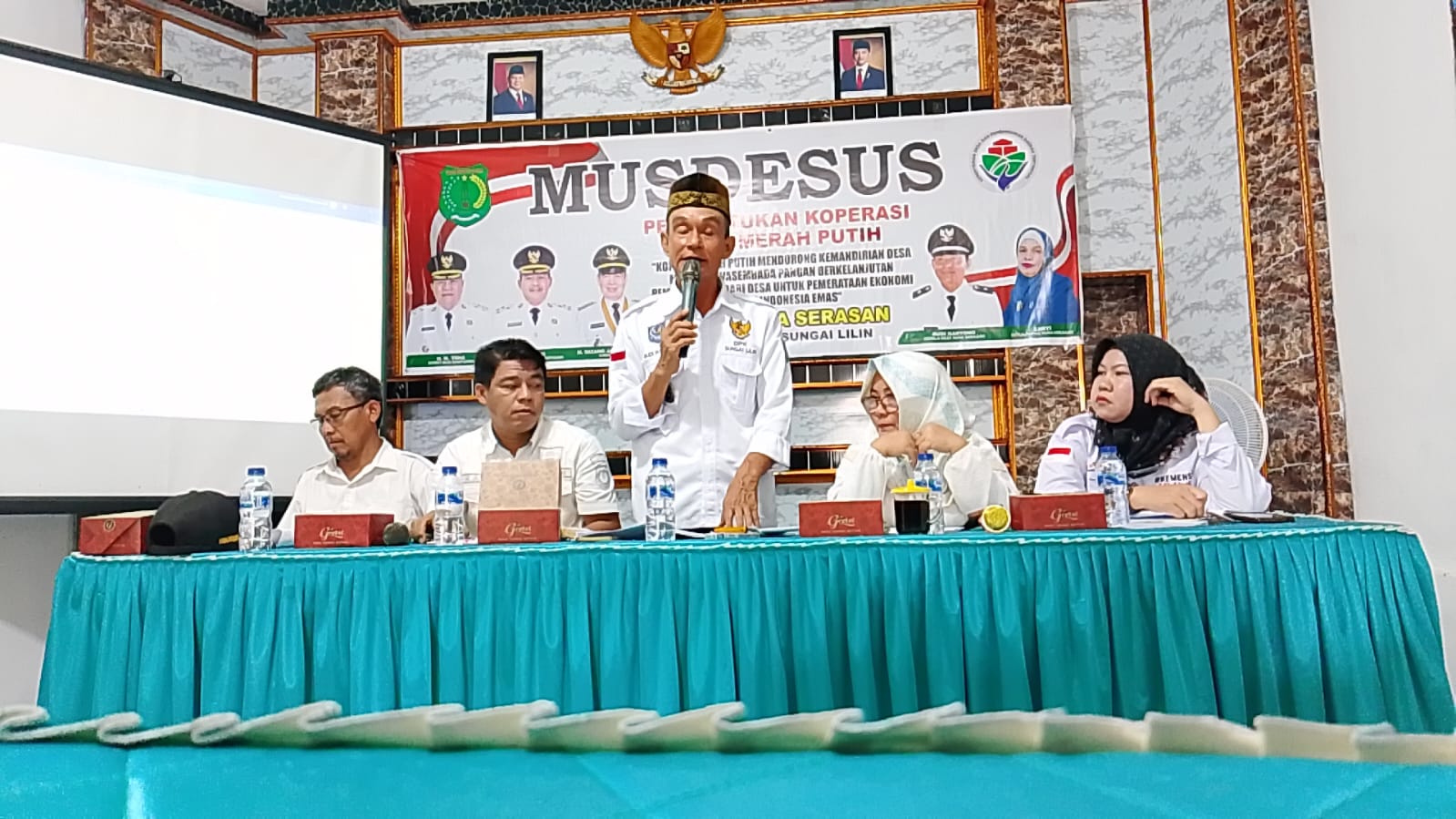 Di wilayah Kecamatan Sungai Lilin Kabupaten Musi Banyuasin (Muba) Desa Nusa Serasan B6 merupakan desa pertama menggelar musyawarah desa khusus (Musdesus) pembentukan Koperasi Merah Putih.