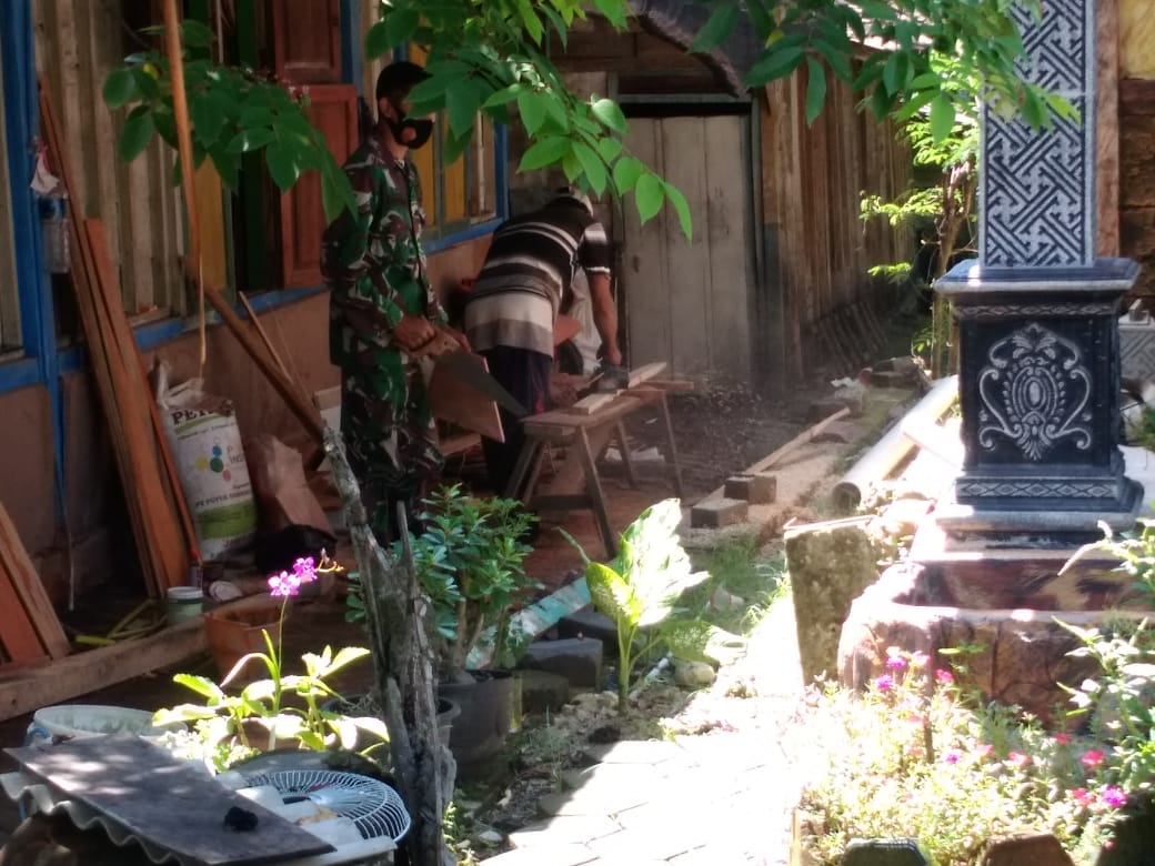 “Kita sedang membantu proses pembuatan plafon untuk kemudian dijual,” kata Serda Siswanto,Rabu(17/03/2021).