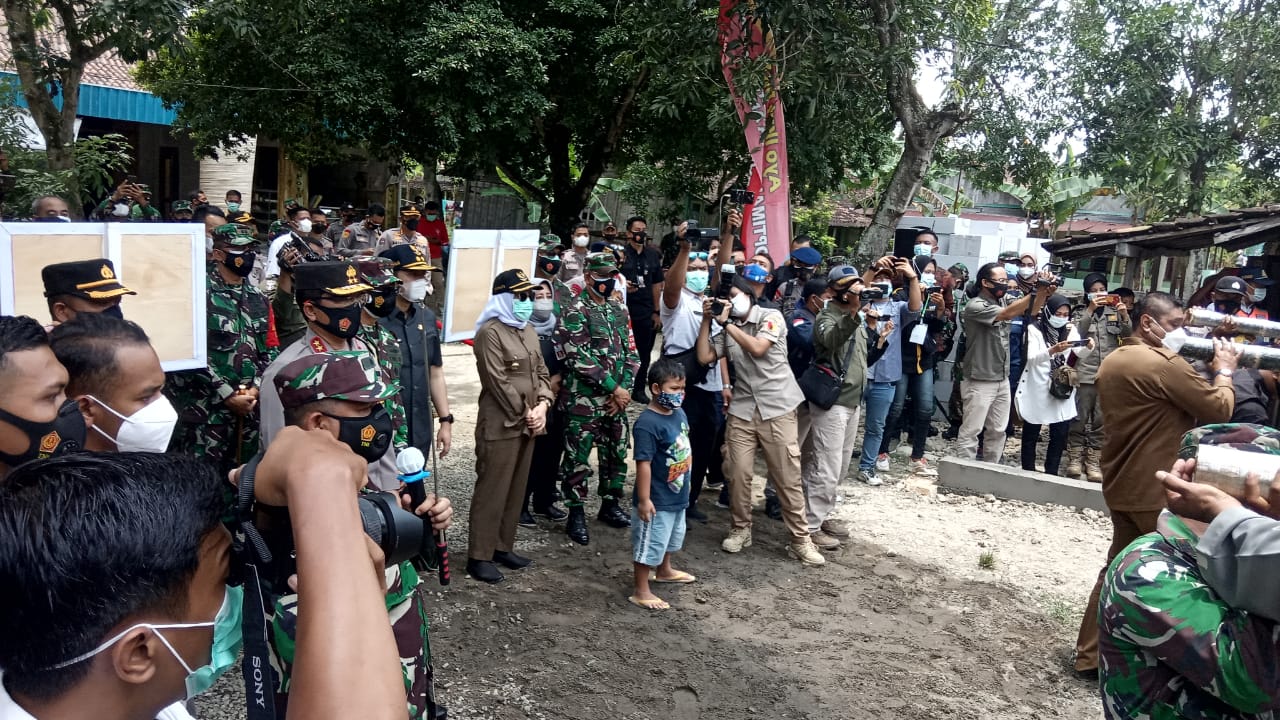 Bojonegoro – Dengan memberitahukan program yang akan dilakukan selama TNI Manunggal Membangun Desa (TMMD) Pangdam V/Brawijaya Sapa warga dan anggota satgas saat membatu memindahkan rumah, Selasa (2/3/2021).