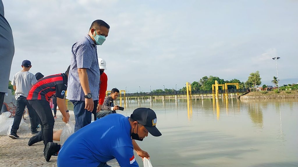 MUBA,- Pemerintah Kabupaten Musi Banyuasin melalui Dinas Perikanan Kabupaten Musi Banyuasin Restocking sebanyak 40 ribu benih ikan Nila merah dan lele Albino di Taman Air Serasan Sekate, Sekayu Musi Banyuasin, Sabtu (30/10/2021)