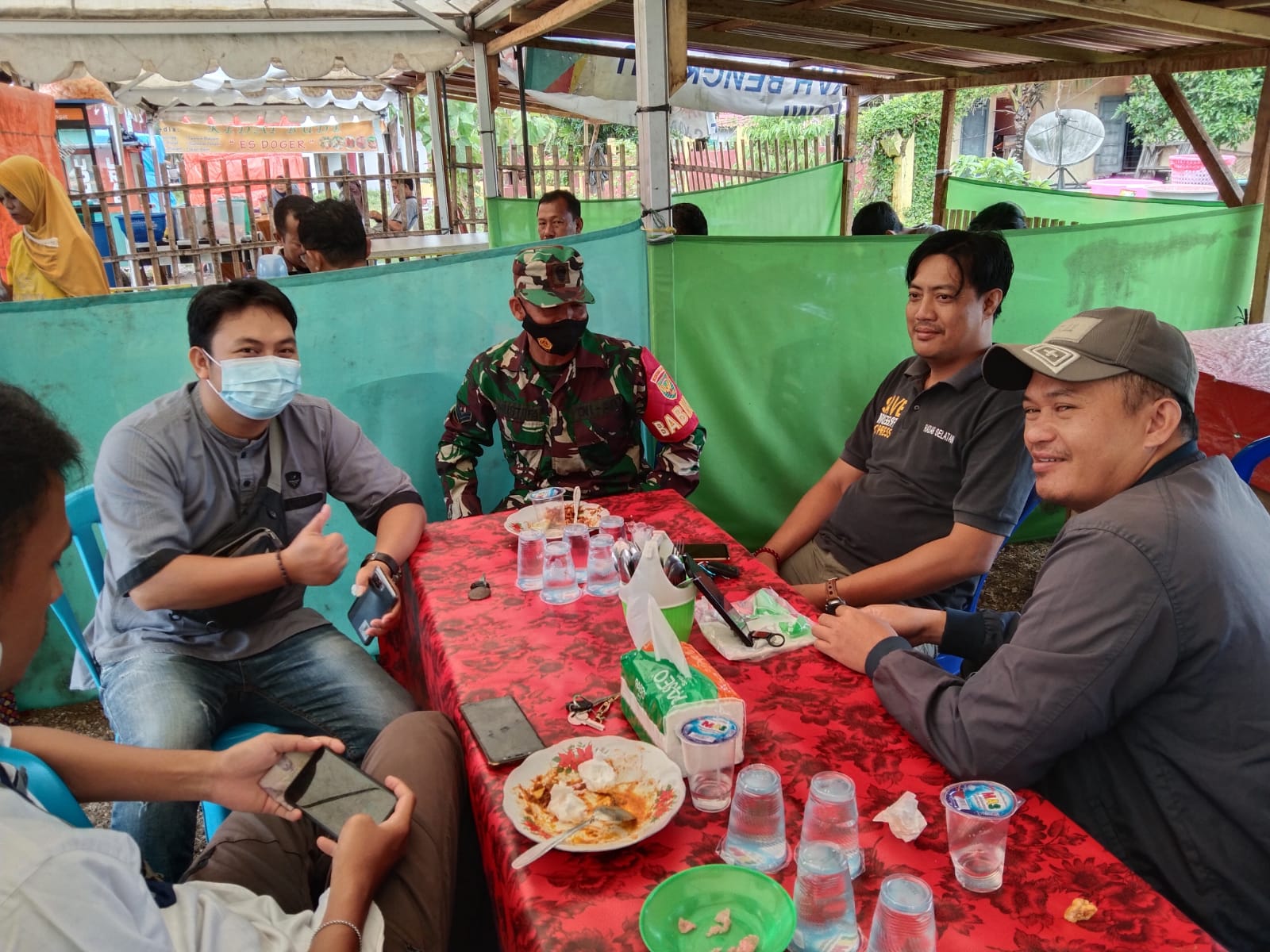Sertu Mustafa dan satu orang anggota Koramil 04/KS, melaksanakan komsos dengan Sdr Julianto Wartawan Radar Selatan Kab. Kaur. tentang diadakannya TMMD ke 112 Kodim 0408/BS .