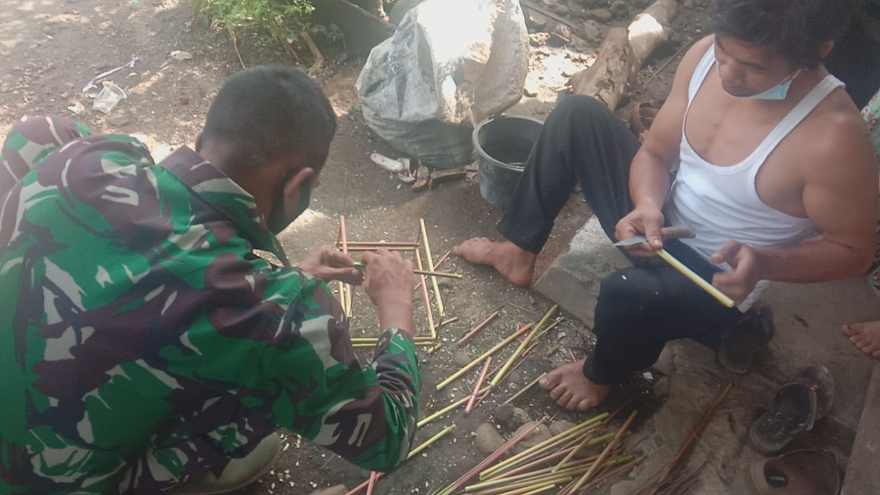 “Satgas TMMD Kodim Tapsel disela waktu melaksanakan komunikasi sosial, cara membuat sangkar dan merawat burung ke pelaku UMKM Saiful Amri Ritonga, di Desa Siuhom, kec. Angkola Barat, Kab. Tapsel, “ jawab Prada Sultoni Hasibuan, Minggu (4/7/2021).