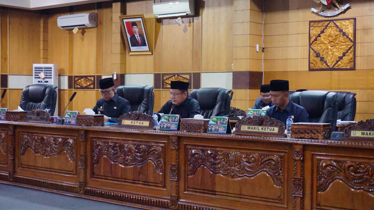 Rapat Paripurna dipimpin oleh Ketua DPRD OKU Ir H Marjito Bachri didampingi Wakil Ketua II, Yoni Risdianto SH dan dihadiri Penjabat (Pj) Bupati OKU H Teddi Meilwansyah bersama unsur Forum Komunikasi Pimpinan Daerah (Forkopimda), serta sejumlah Pejabat dilingkungan pemerintah Kabupaten OKU.