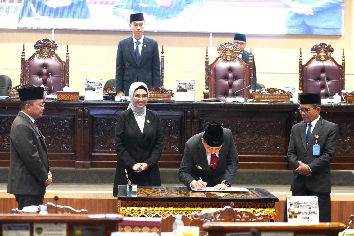 Setelah Para Peserta menyetujui Bersama apa yang menjadi kesimpulan Pansus dan Paripurna, dilanjutkan dengan prosesi penandatangan Keputusan bersama antara DPRD Prov. Sumsel dan Gubernur Sumsel terhadap keenam Raperda tersebut, yang rancangan Keputusan Bersama itu telah dibacakan oleh Sekretaris DPRD Prov. Sumsel; H. Aprizal, S.Ag, SE, M.Si yang telah disetujui para peserta sidang.