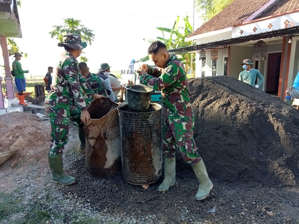 Pati – Drum dan air sangat berperan penting dalam pengerjaan sasaran fisik pengecoran jalan di Desa Tamansari, Kecamatan Jaken, Kabupaten Pati, dalam TMMD Reguler Ke 111 Kodim 0718/Pati. Perannya sangat vital, hal ini air peran sangat penting dibutuhkan dalam pemakaian untuk pengecoran jalan.