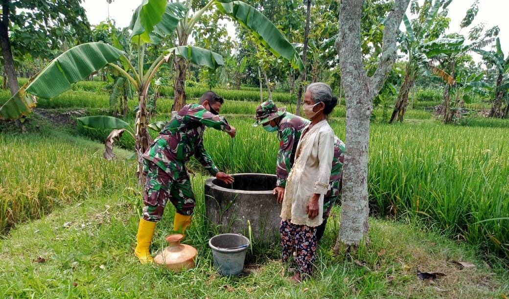 Seperti yang dilakukan oleh Kedua Personil Satgas TMMD ke-110, yaitu Kopda Puntiono, dan Koptu Kasturi yang melakukan kegiatan komsos di Masyarakat terkait program TMMD ke-110 kemudian bertemu dengan warga yang sedang mengambil air disalah satu sumur tradisional di Desa Jatimulyo, Kecamatan Tambakrejo, Kabupaten Bojonegoro, Selasa (23/03/2021).
