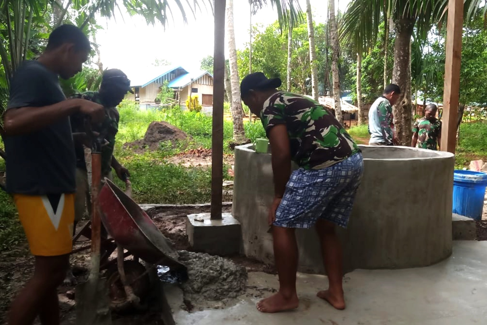 “Dari pembangunan 4 sumur air bersih, saat ini 2 unit sumur sudah mencapai 100 % (selesai dibangun), untuk yang 2 unit sumur masih dikerjakan personel Satgas TMMD yang dibantu dengan masyarakat Kampung Po Epe”. ungkap Lettu Inf Abdullah Latupono pada hari Senin tanggal 11 Maret 2024.