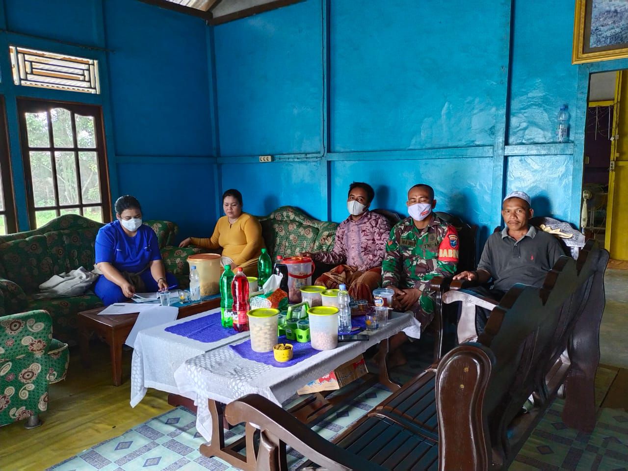 Mempawah – Babinsa Koramil 1201-02/Sungai Pinyuh Koptu Ma’mun mendampingi petugas Puskesmas Sungai Pinyuh melakukan pendataan keluarga di Desa Galang, Kecamatan Sungai Pinyuh, Kabupaten Mempawah, Rabu (26/5/2021). Hal ini dilakukan dalam rangka pengumpulan data Studi Status Gizi Indonesia (SSGI) tahun 2021.