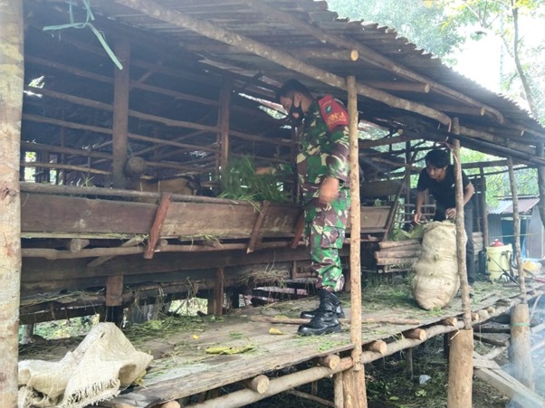 Kubu Raya – Sebagai bentuk upaya Babinsa dalam mendukung ketahanan pangan nasional baik disektor pertanian maupun peternakan untuk meningkatkan kesejahteraan warga binaanya dimasa pandemi covid-19, Babinsa Koramil 1207 -10/Terentang Kodim 1207/BS melaksanakan komsos dan lakukan pendampingan kepada peternak kambing di Desa Teluk Bayur, Kecamatan Terentang, Kabupaten Kubu Raya. Kamis (10/06/2021)