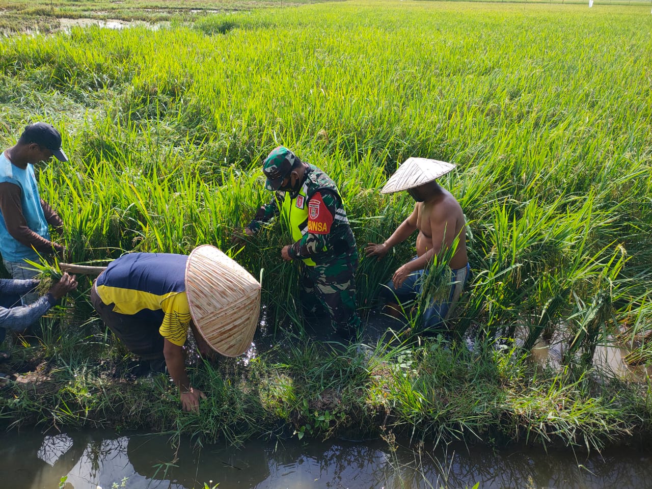 Kota Baru ,- Anggota Satgas TNI Manunggal Membangun Desa (TMMD) Kodim 1004/Kota Baru di Desa Manunggul Baru Kecamatan. Sungai Durian Kabupaten Kotabaru , selain bekerja di sasaran fisik Anggota satgas juga ikut membantu petani di sawah milik salah seorang warga Desa senin (11/10/2021)