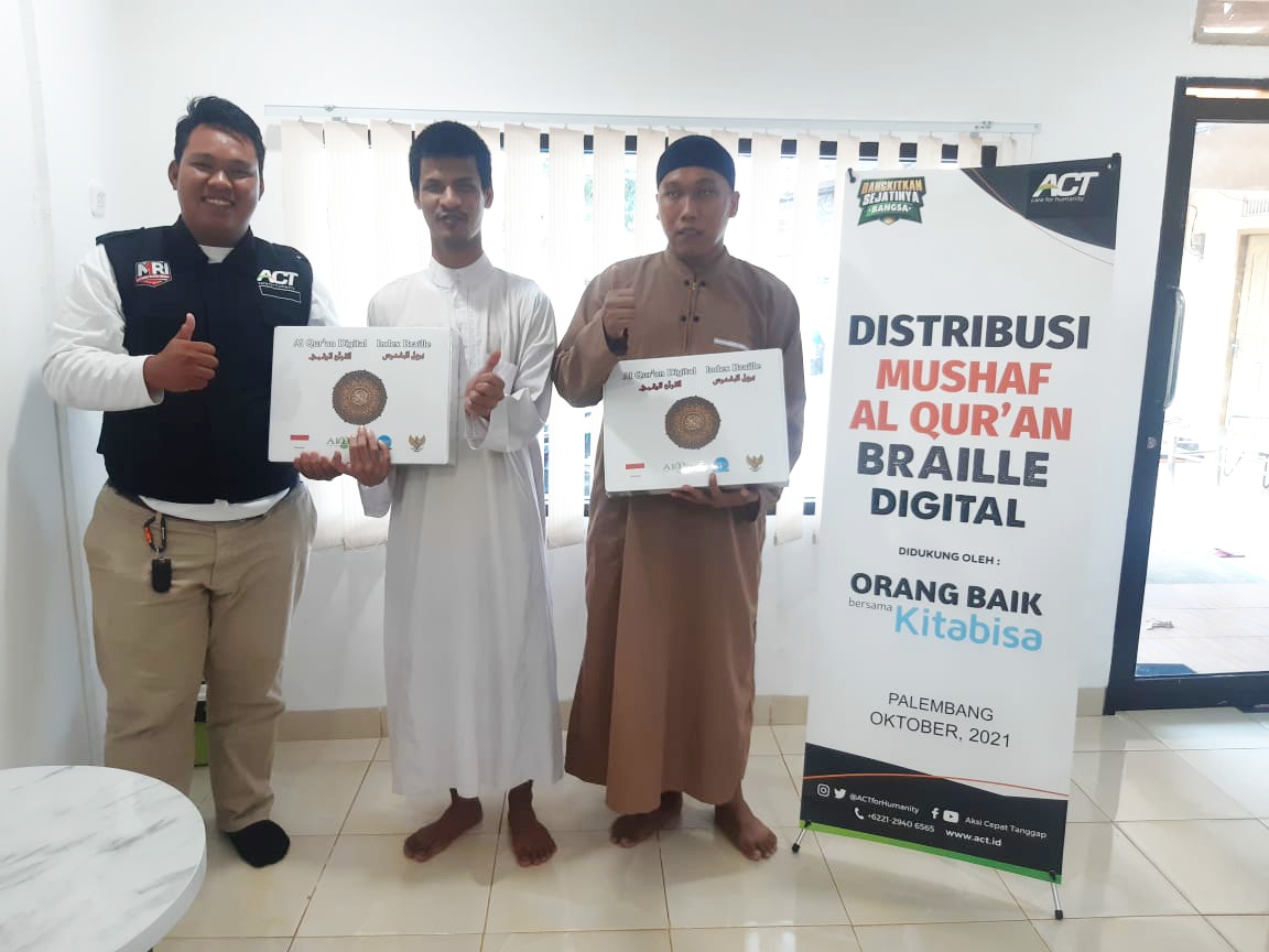 Berangkat dari semangat itu, ACT Palembang pun mendistribusikan ALquran Braille Digital kepada para penyandang tunanetra, untuk memudahkan kegiatan belajar mengaji mereka. “Alhamdulillah, semangat berderma sahabat donatur melalui ACT kali ini ditujukan untuk mendukung perjuangan sahabat tunanetra untuk mempelajari kitab Alquran. Alhamdulillah melalui program Wakaf Alquran Braille, terhimpun kurang lebih 20 Alquran braille digital dengan nilai satuannya Rp 1.500.000/per satu Alquran. Semoga jadi amal jariyah kita bersama,” tutup Aris selaku ketua Program ACT Palembang.