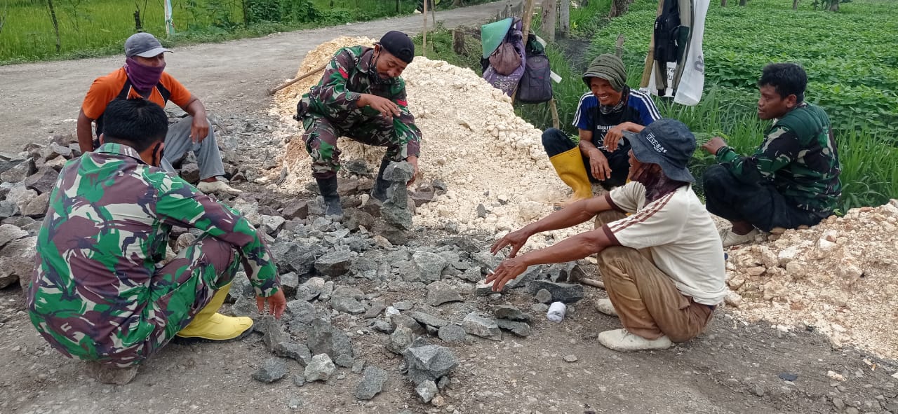 Koptu Puntiono mengatakan, hal tersebut tidak disia-siakan oleh personel Satgas TMMD, untuk menjalin kersama bergotong royong pada pengerjaan program fisik,Senin(22/03/2021).
