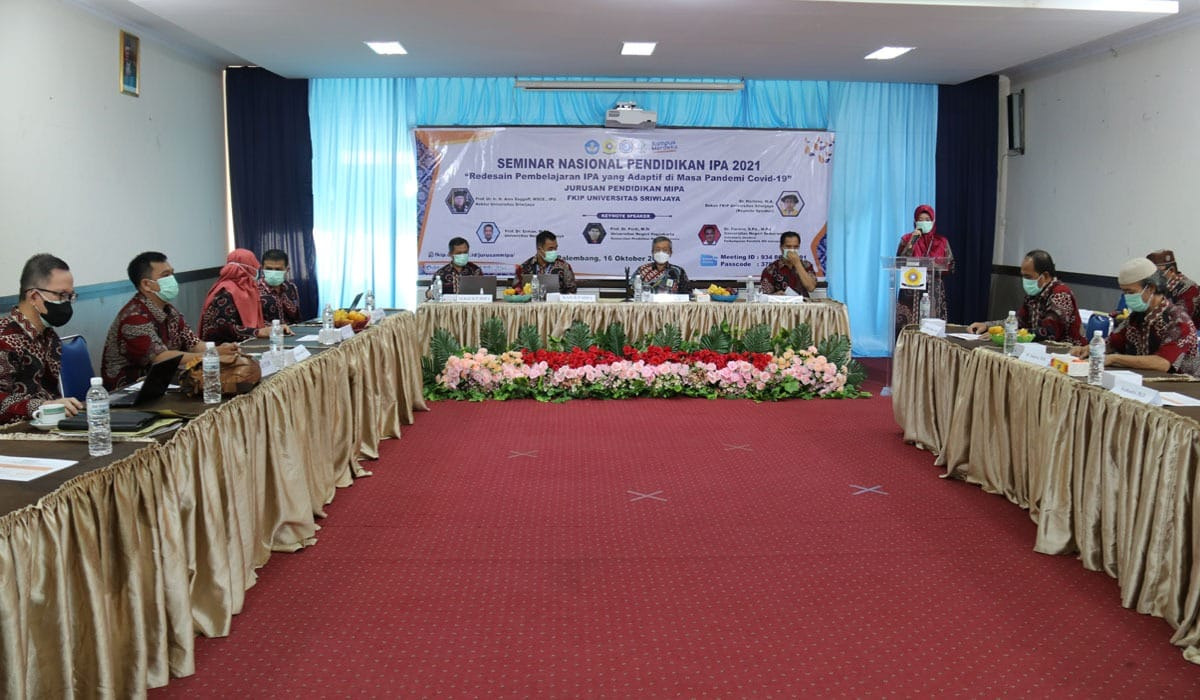 Kegiatan Seminar Nasional Pendidikan IPA 2021 dengan tema “Redesain Pembelajaran IPA yang Adaptif di Masa Pandemi Covid-19” pada hari Sabtu, 16 Oktober 2021 di Kampus Pascasarjana FKIP Universitas Sriwijaya, Bukit Besar, Palembang Sumatera Selatan, dilaksanakan secara daring melalui zoom meeting dan dihadiri oleh Keynote Speaker serta invited Speaker dari berbagai Universitas. Keynote Speaker antara lain Prof. Dr. Erman, M.Pd. (Universitas Negeri Surabaya), Prof. Dr. Paidi, M.Si. (Universitas Negeri Yogyakarta – Konsorsium Pendidikan Biologi Indonesia), Dr. Parmin, S.Pd., M.Pd. (Universitas Negeri Semarang – Sekretaris Jenderal Perkumpulan Pendidik IPA Indonesia), dan Dr. Hartono, M.A. (Dekan FKIP Universitas Sriwijaya).