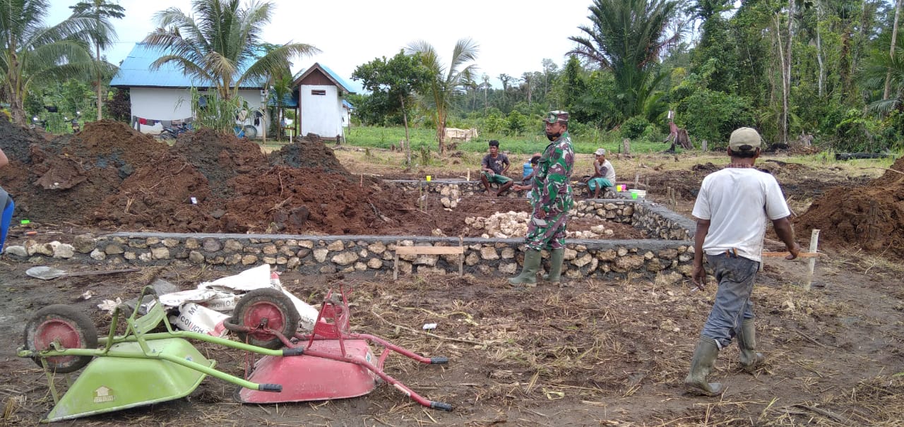 KABUPATEN SARMI – Faktor cuaca yang menjadi kendala dalam pelaksanaan pembangunan, tak menghalangi semangat personel TMMD dalam bekerja.
