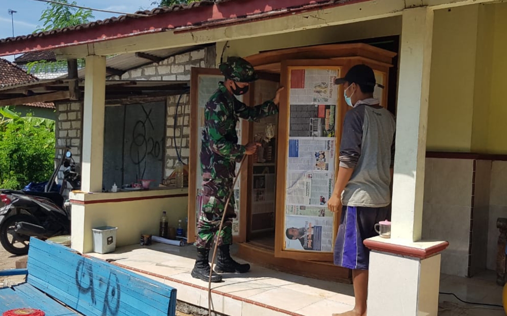 Seperti terlihat kali ini, Serda Sukarji salah satu anggota Satgas TMMD sedang membantu Bapak Sukarno (48) warga Dukuh Pandahan, Desa Tamansari, Kecamatan Jaken, Kabupaten Pati saat mengerjakan finishing almari kayu dengan sistem semprot menggunakan alat kompresor, Kamis (08/7/2021).