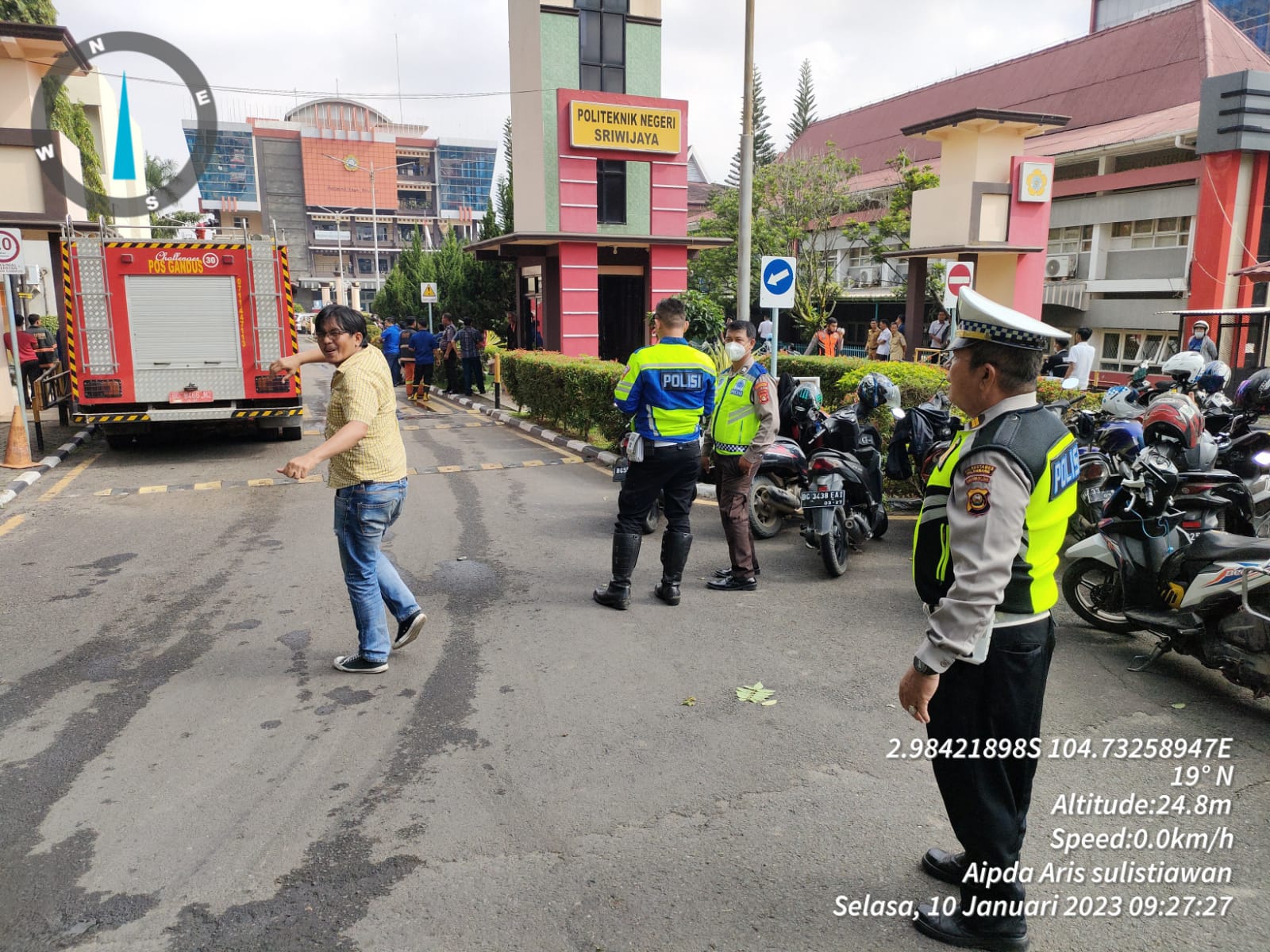 Sementara itu, Kepala Humas Politeknik Negeri Sriwijaya, Edi Aswan mengatakan, bahwa pihaknya mendapatkan informasi dari mahasiswa mengenai kebakaran yang terjadi di gedung riset center Politeknik Negeri Sriwijaya. “Mendapati informasi itu tim kita langsung ke lokasi dengan membawa alat pemadam api ringan, namun kondisi saat itu api sudah membesar, sehingga pihaknya dengan cepat menghubungi pihak pemadam kebakaran,” aku dia.