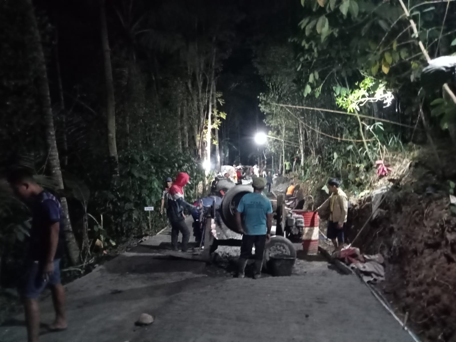 Mengingat cuaca kadang yang sering berubah, maka untuk mencapai target waktu diperlukan perencanaan yang matang dan salah satunya dengan melaksanakan lembur malam hari. Dengan penerangan yang minim Satgas TMMD bekerja dengan semangat.